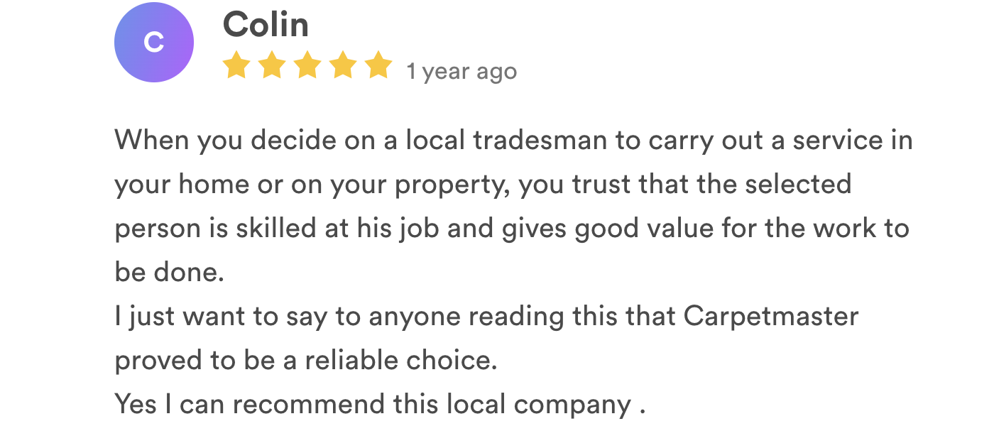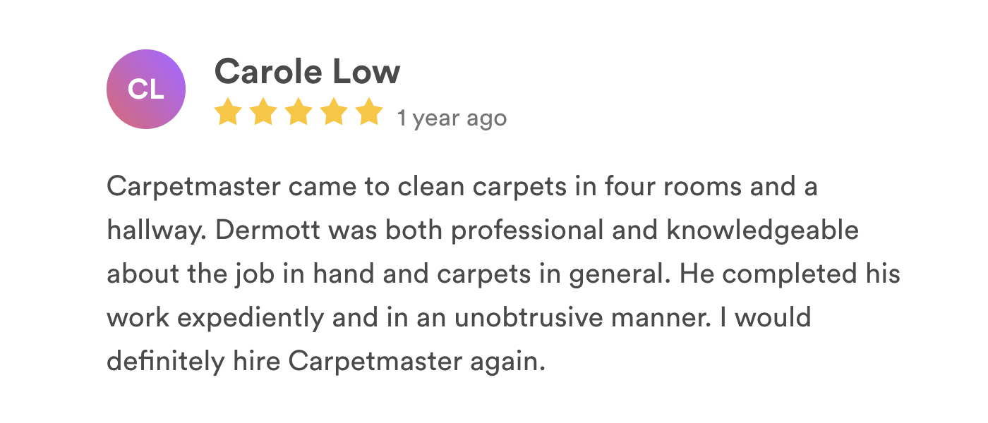 OVER 240 FIVE STAR REVIEWS OF CARPETMASTER
